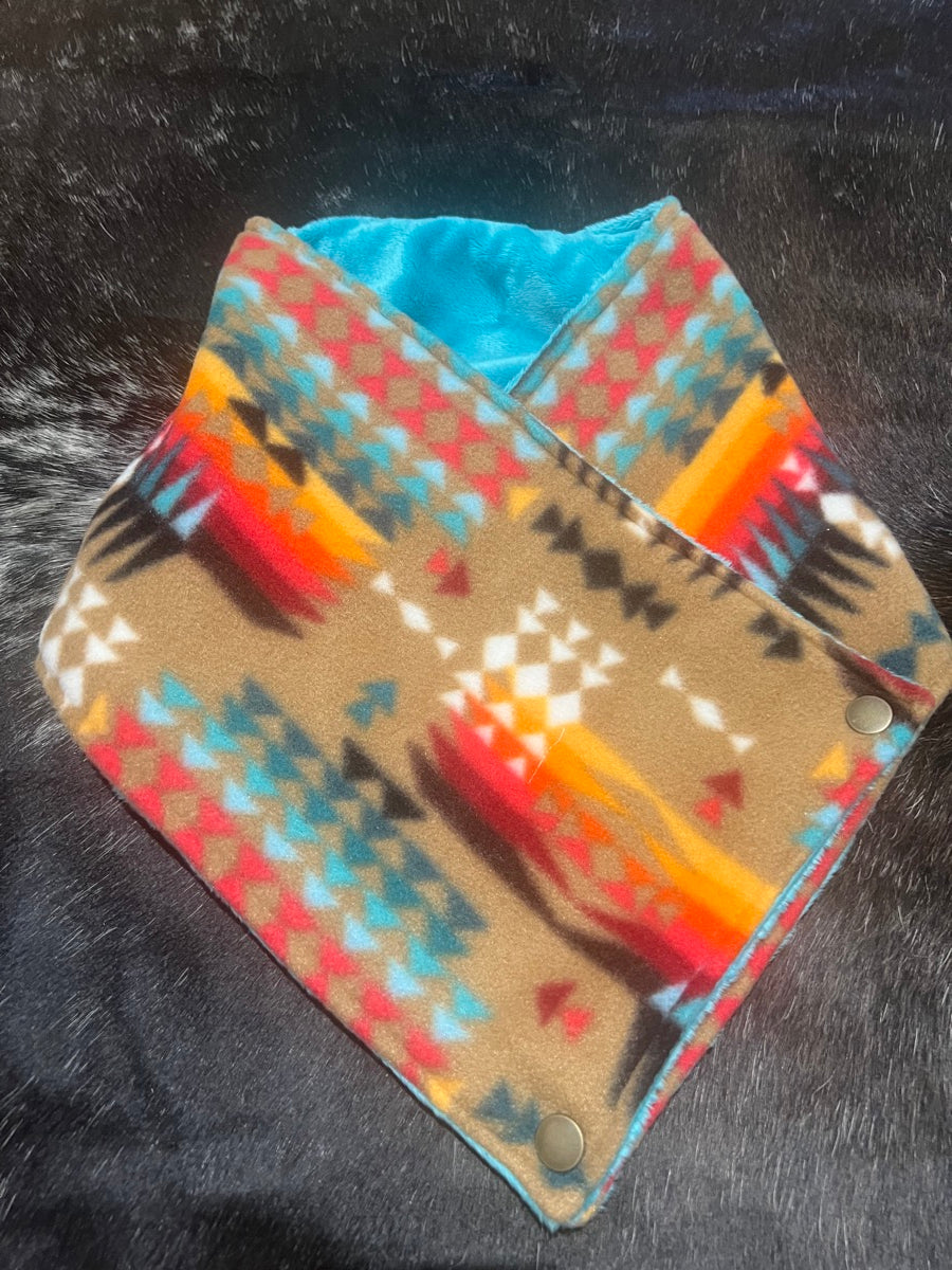 These cowl neck warmers will keep you warm on the cool winter nights. Soft fabric with snap closures. Handmade in Black Canyon City, AZ.