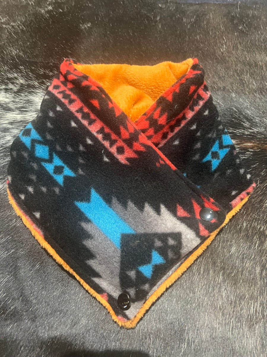 These kids cowl neck warmers will keep them warm on the cool winter nights. Soft fabric with snap closures. Handmade in Black Canyon City, AZ.