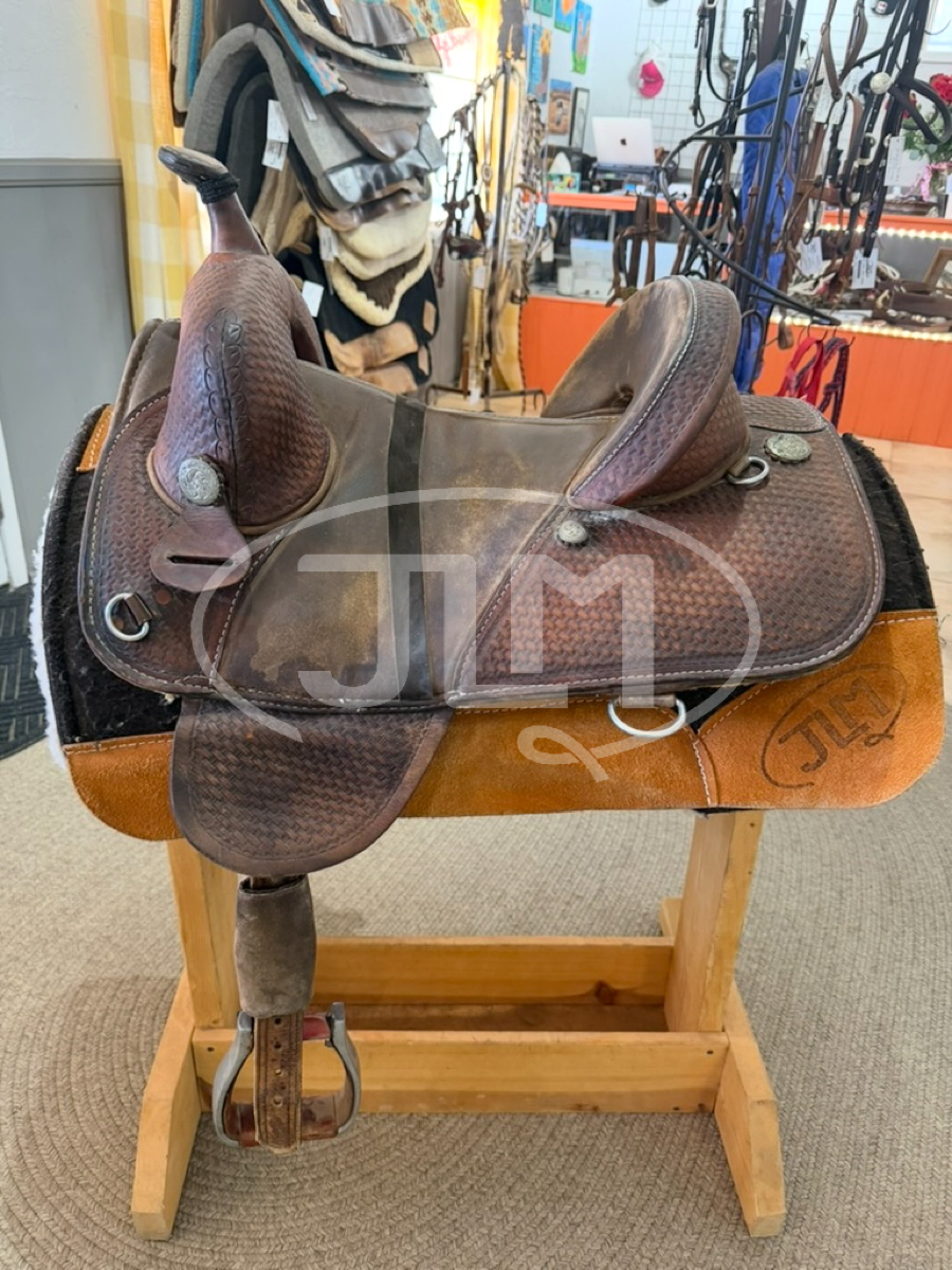14" Bob Marshall Sports Saddle by Circle Y Treeless Barrel Saddle Includes stirrups shown.