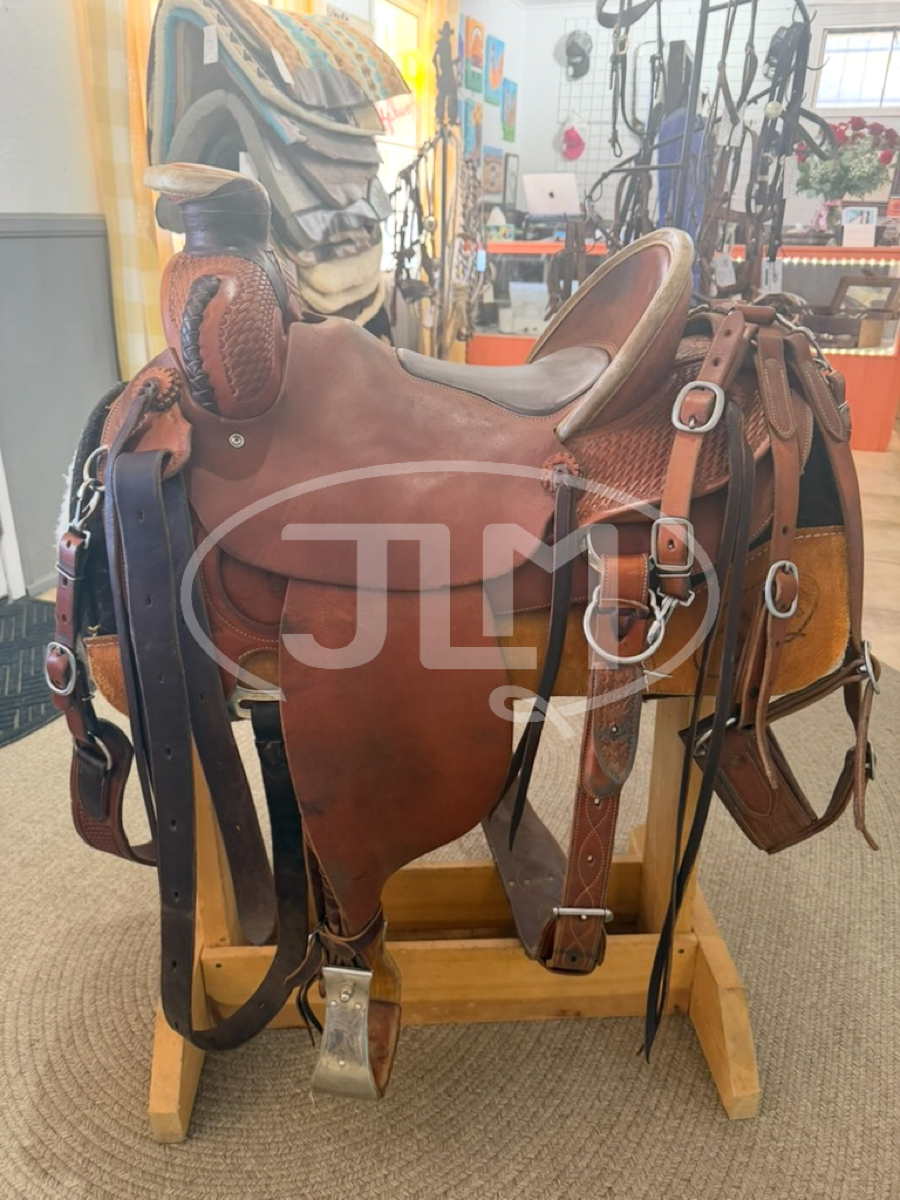 16" Clay Sharp Custom Mule Saddle includes breast collar, britchen and stirrups shown in pics.