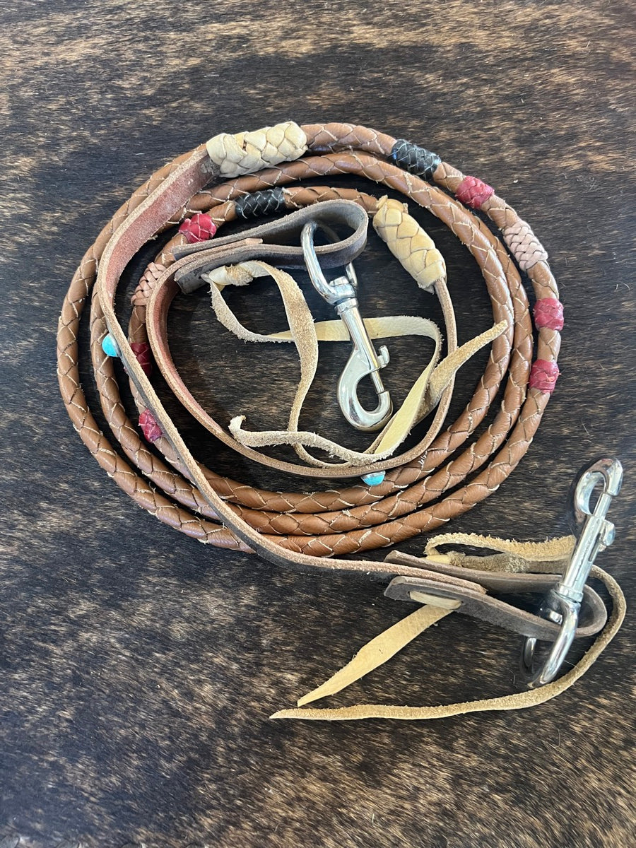 Pre Owned 9 ft Soft Braided Leather Reins with Rawhide with Turquoise dots
