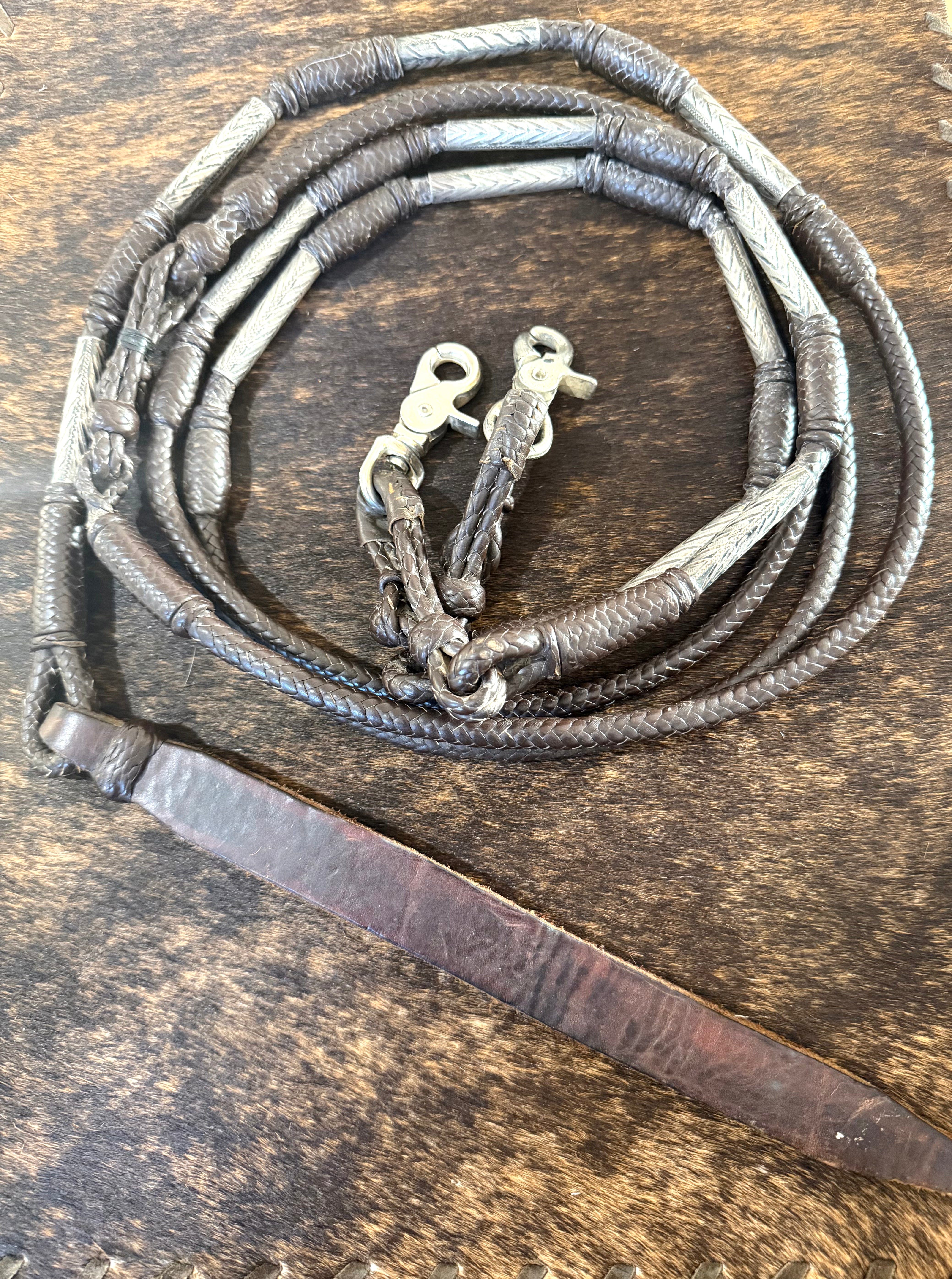 Vintage Sterling Silver Braided Leather Romel Vaquero Reins
