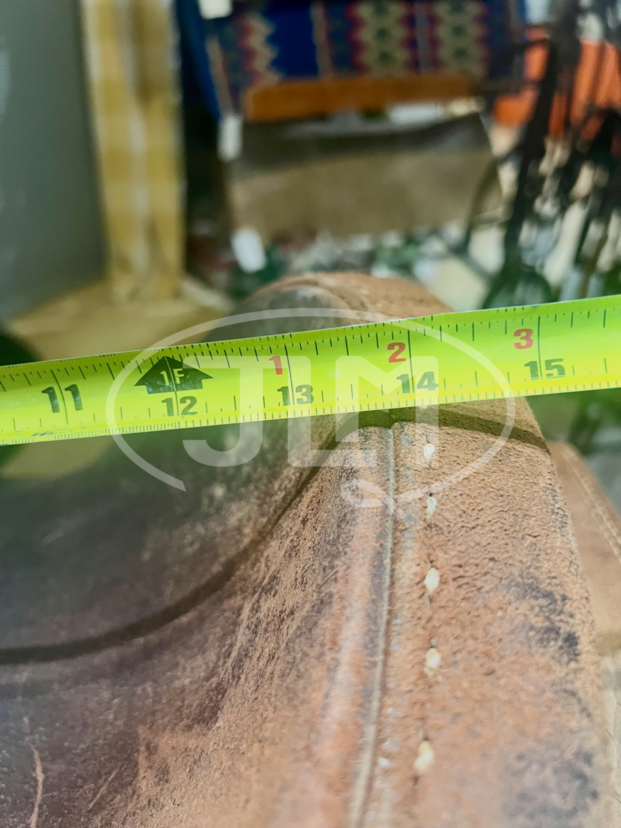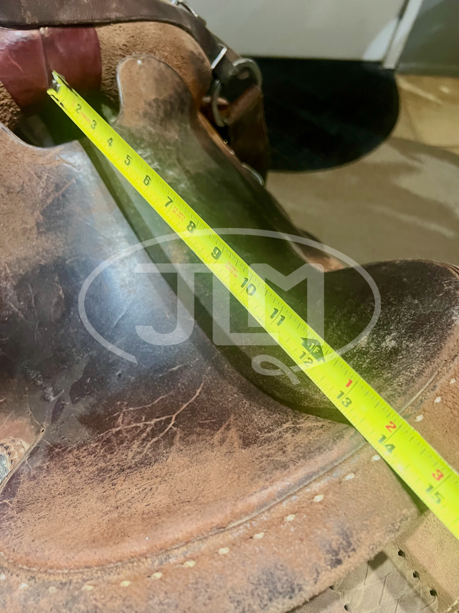This 13.5" Smarty Team Roping Saddle includes the stirrups, back cinch and breast collar.