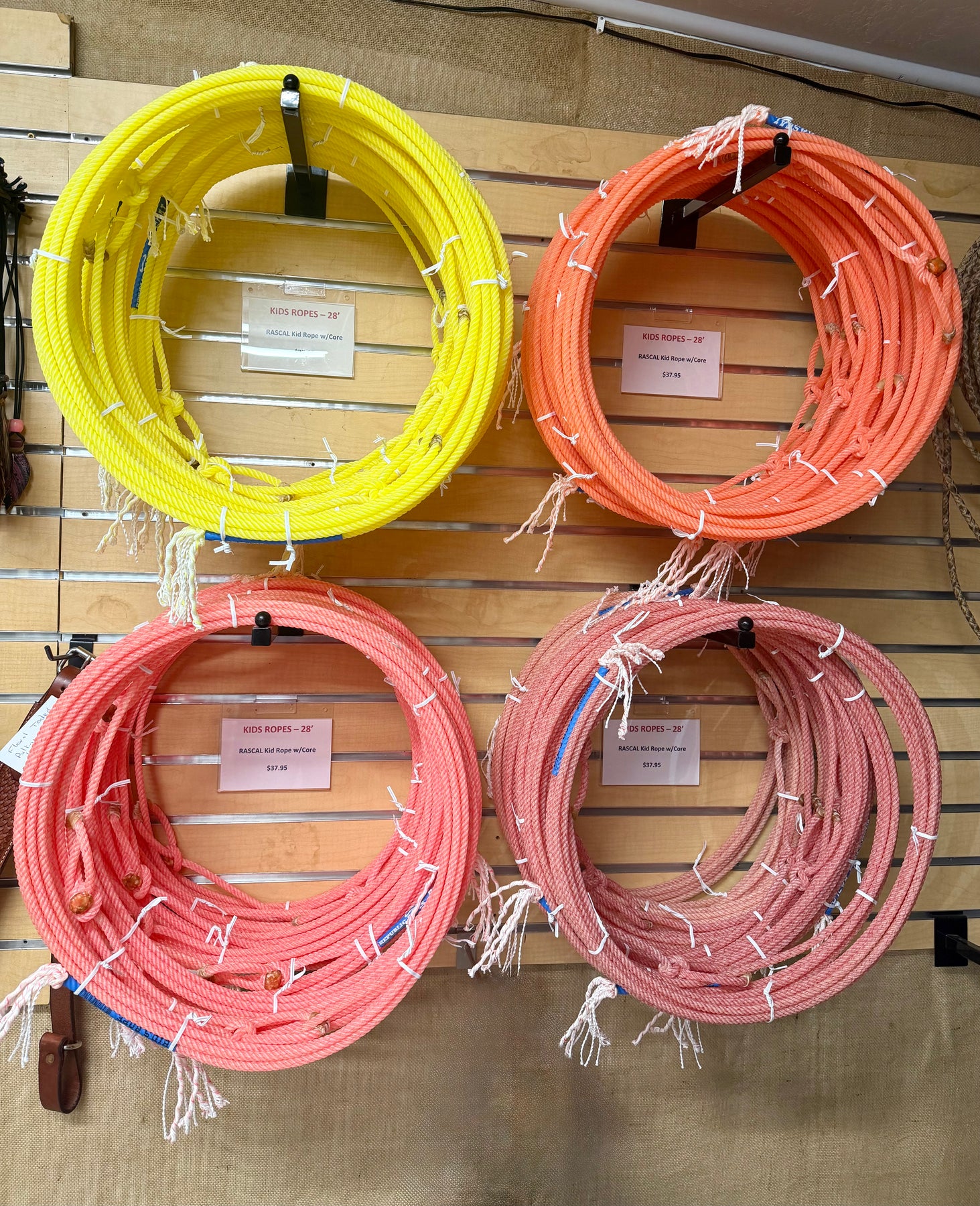 THE RASCAL KID ROPE WAS CREATED ESPECIALLY FOR DUMMY ROPING. IT'S SIZE AND WEIGHT MAKE IT EASY TO CATCH WITH, EVEN AT THE LONGEST DISTANCES. JUST LIKE OUR HEAD & HEEL ROPES, OUR RASCAL HAS THE CORE! MOM & DAD WANT THE CORE IN THEIR ROPE, THE YOUNG ROPERS WANT IT TOO!