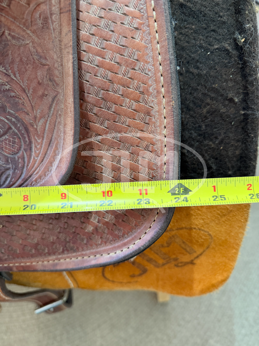 Includes breast collar, back cinch and stirrups shown.