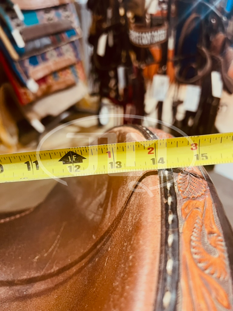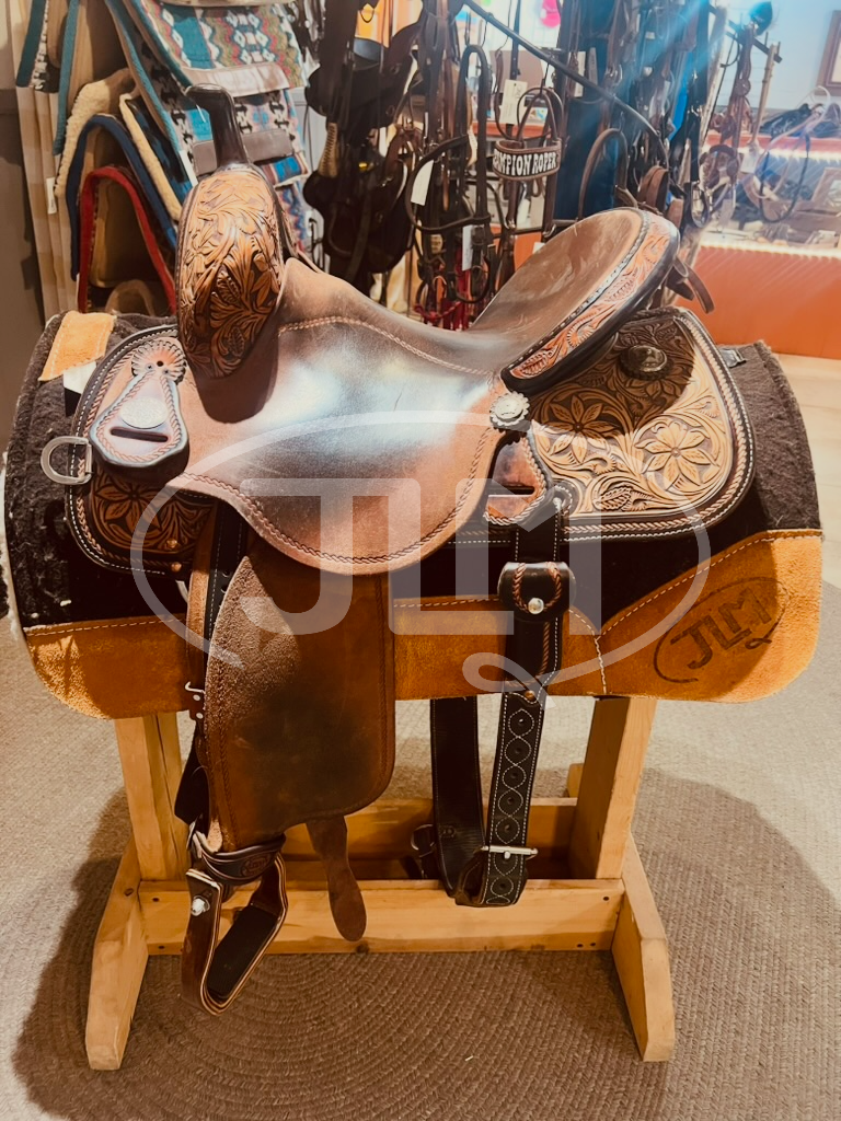 This is a 2023 14" Martin Saddlery Stingray Barrel saddle that will ride closer to a 13.5" seat.