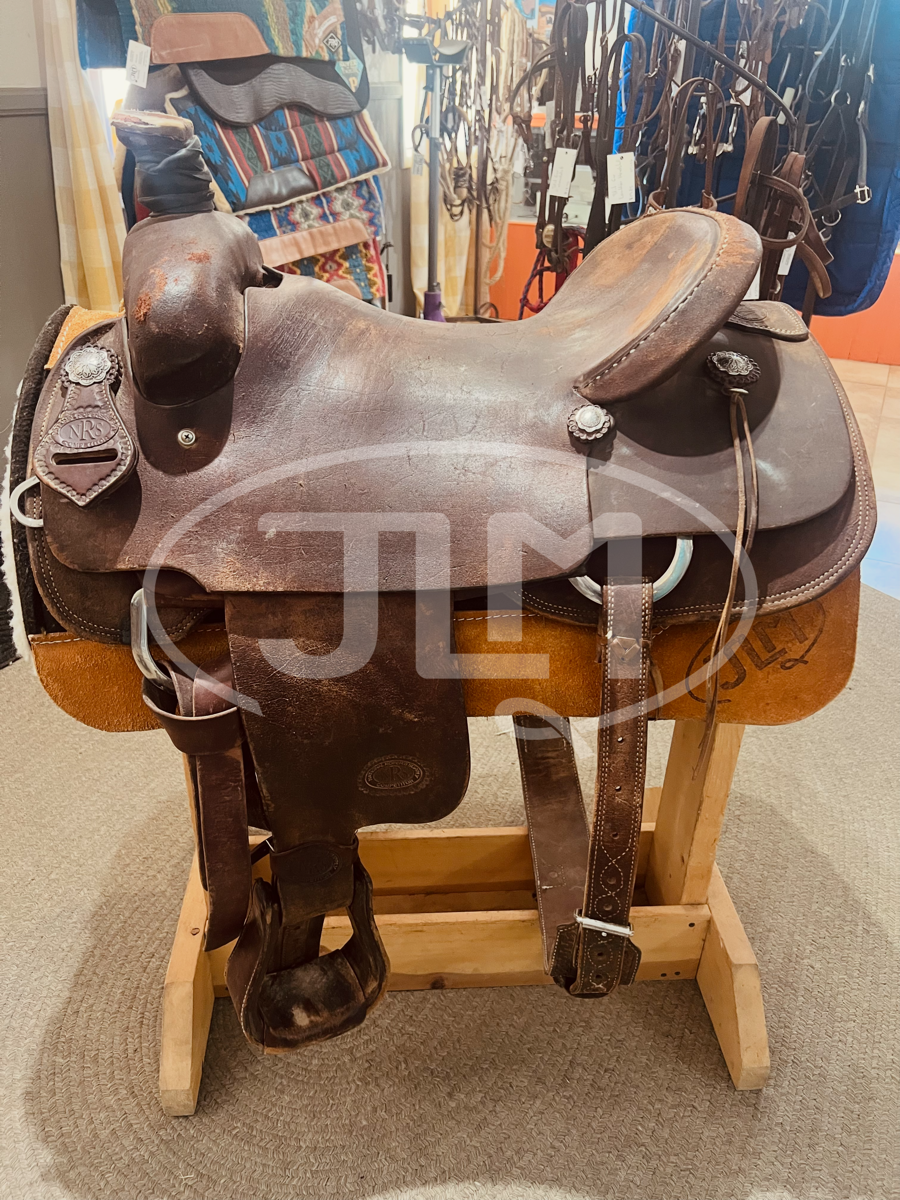 17" NRS Ranch Cutter saddle includes stirrups and back cinch.