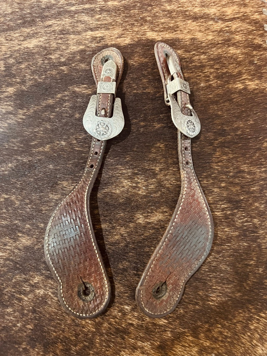 Pre-Owned Basketweave Leather Spur Straps with Gist Silversmiths Buckles