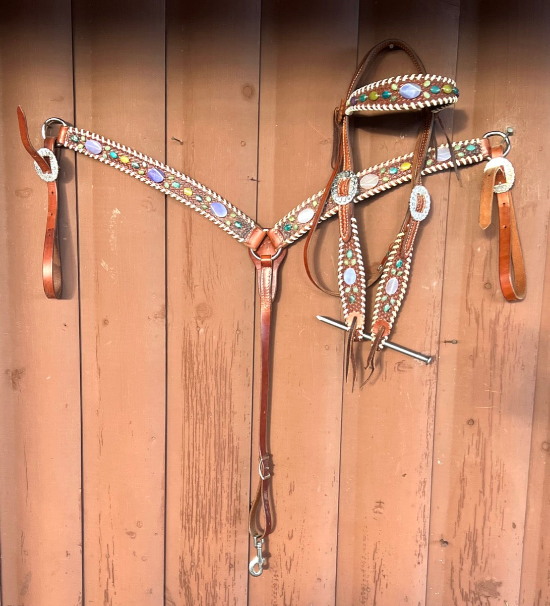 Pre Owned - Never on a horse - Gemstone Embellished Tack Set Headstall and Breast Collar.