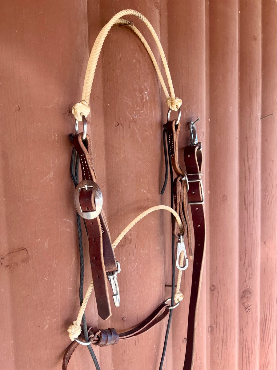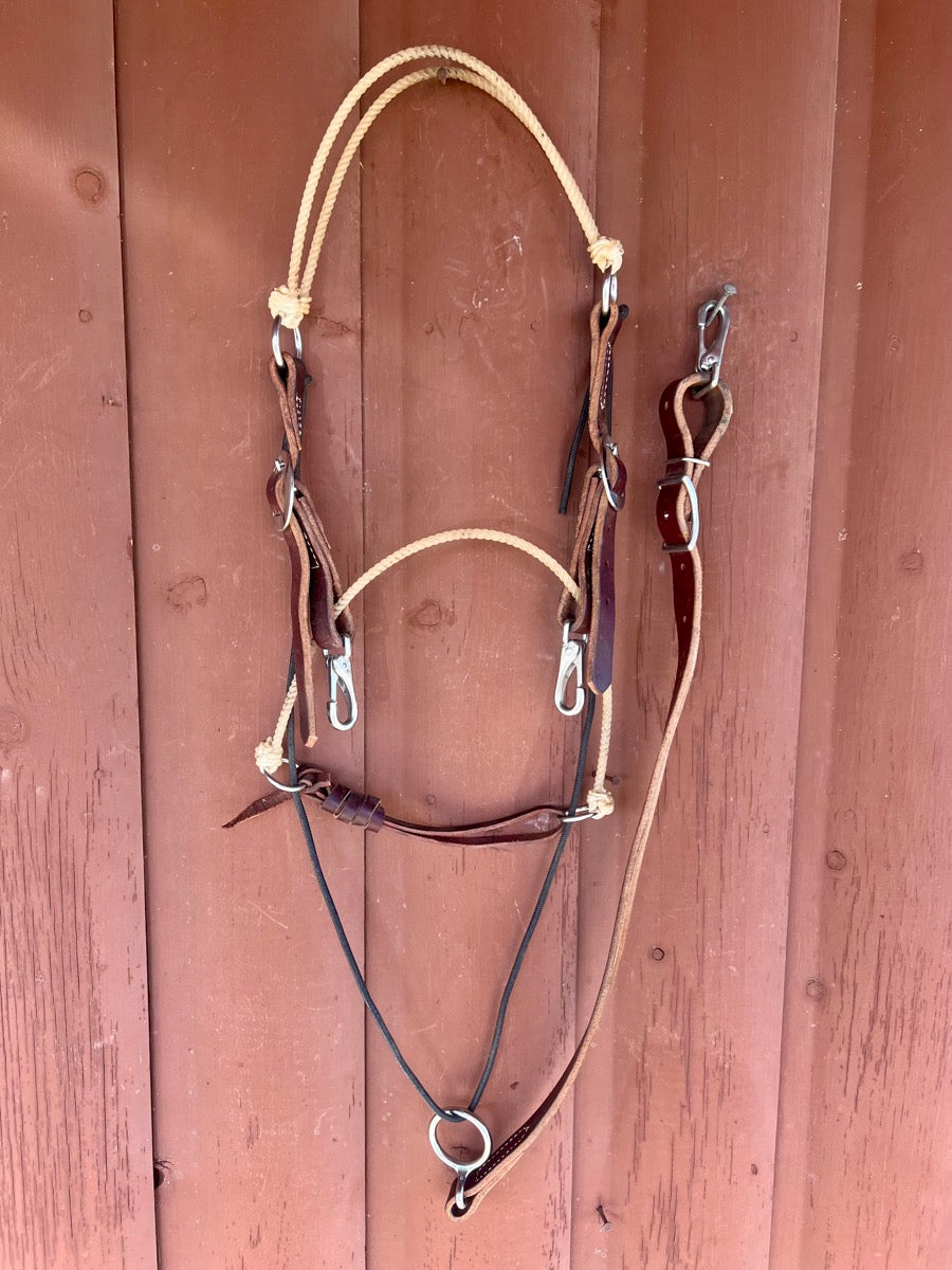 Pre-owned Game Changer Tie Down made with Harness Leather, 3/16" Lariat Rope and Stainless Steel Hardware. Made by Wayne's Place Saddlery in Tonopah, Arizona.