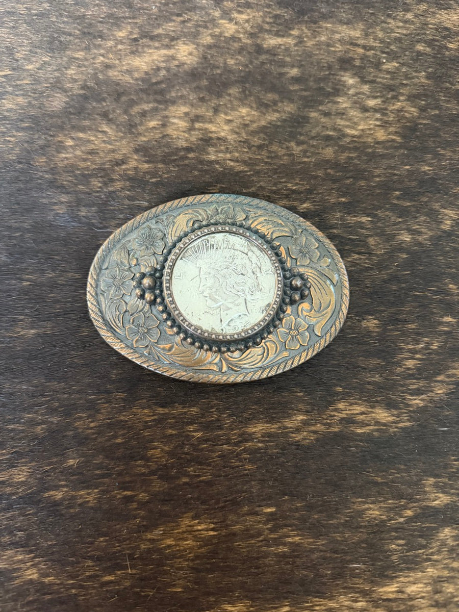 Vintage 1925 Peace Silver Dollar Coin Western Belt Buckle JL11121