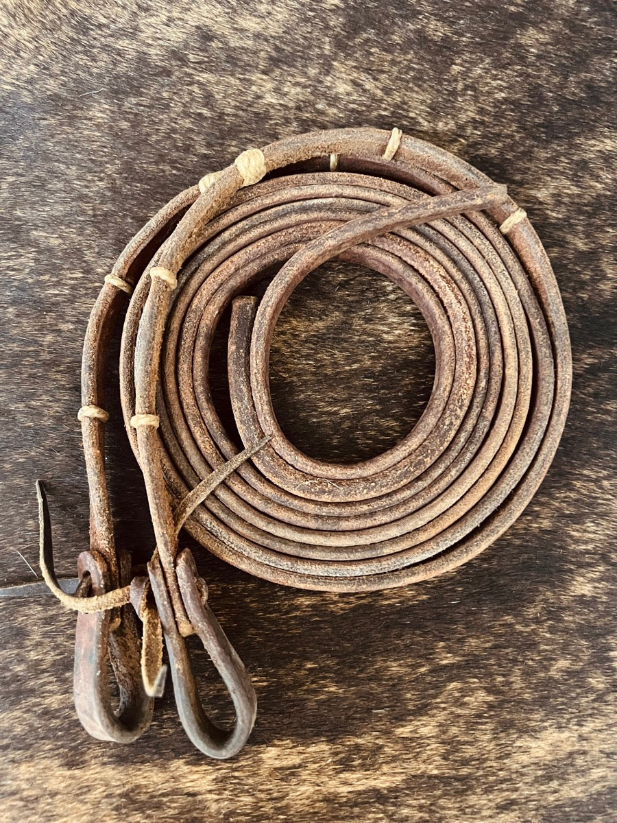 Used 7' Leather Split Reins Weighted Ends with Braided Rawhide accents