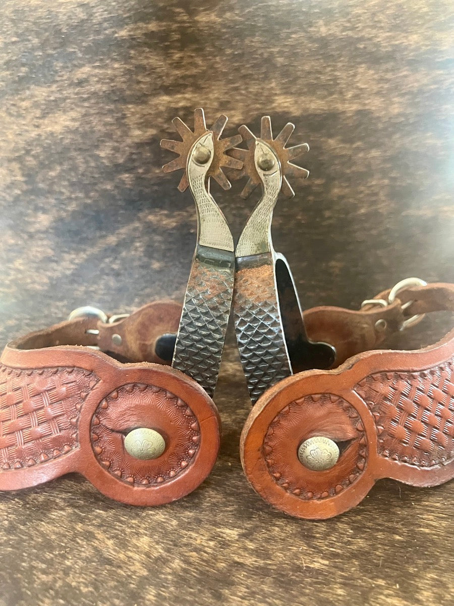 Used Rasp Spurs with Gooseneck Shank Western Spurs with Leather Spur Straps
