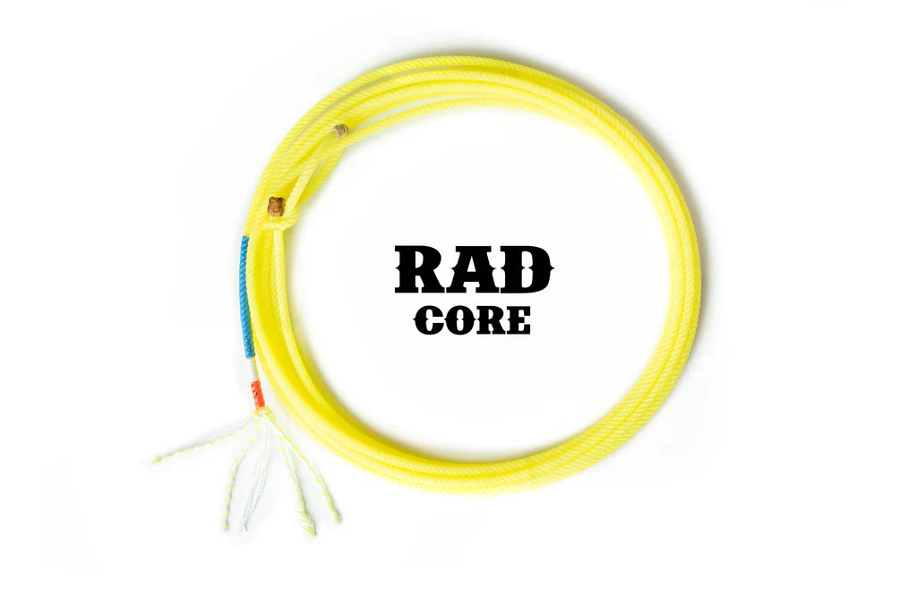 THE RAD WITH CORE IS OUR LIGHTEST NYLON/POLY BLENDED ROPE, WITH MORE TIP TO BODY RATIO. IT IS EXCEPTIONALLY EASY TO SWING AND DELIVER. IT WORKS EXTREMELY WELL ON ALL SIZES AND SPEEDS OF CATTLE. THE RAD IS NEON YELLOW FOR GREAT VISIBILITY.